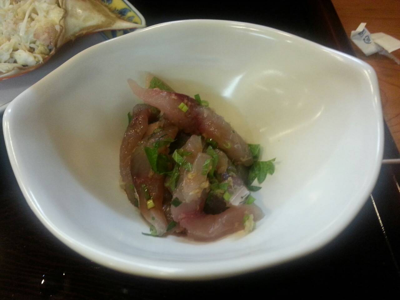 初めは『ヤリイカ・ヒラメエンガワ・鯛の刺身&ワタリガニ』