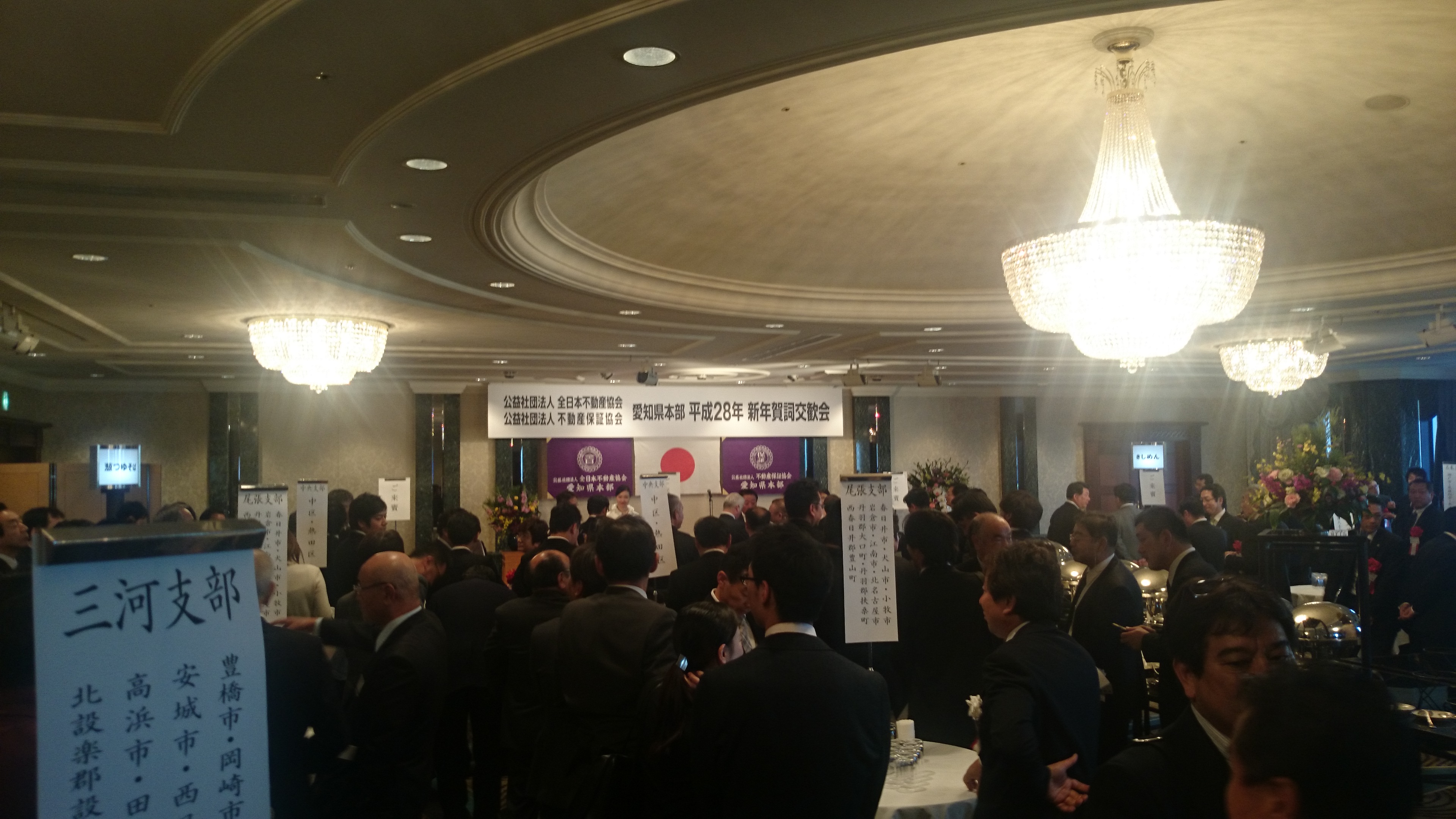 昨年と違って賀詞交歓会参加の国会議員先生方らは国会予算審議開催中の為、出席は”秘書、秘書、秘書”の代理オンパレードでした(笑)
