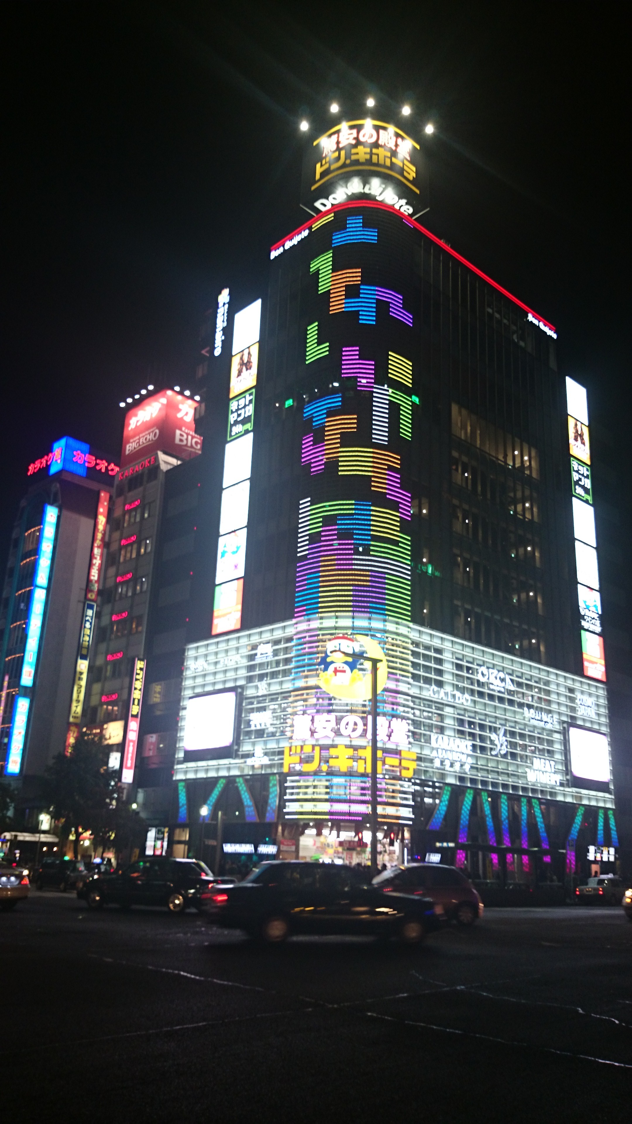 栄にそびえる 投稿日時: 2014年11月2日 投稿者: aiaikaihatsu 昨夜は久々の栄! 夜もすっかり秋っぽくなってきた来たと思いきや、 一段と目立つ建物が目に入ってきた! 昨日オープンの『ドンキホーテ名古屋栄店』 思わず、写メ♪ 1回から4階までがドンキらしい・・・。 栄の新名所、不夜城の様にそびえ建つ!
